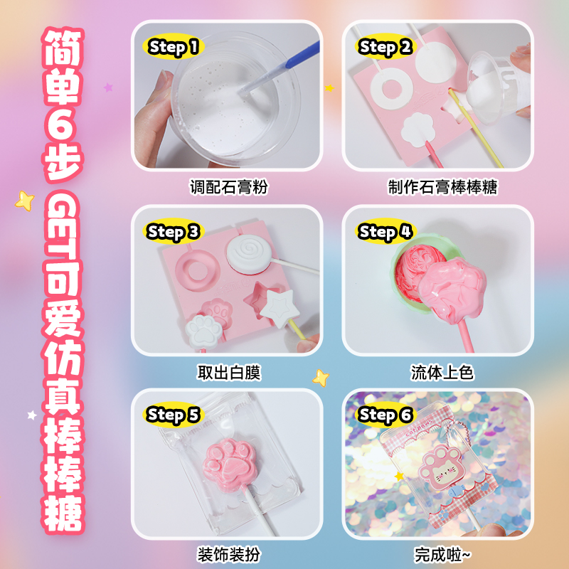 迪乐姆流体石膏棒棒糖仿真食玩儿童玩具手工diy材料包白模礼物