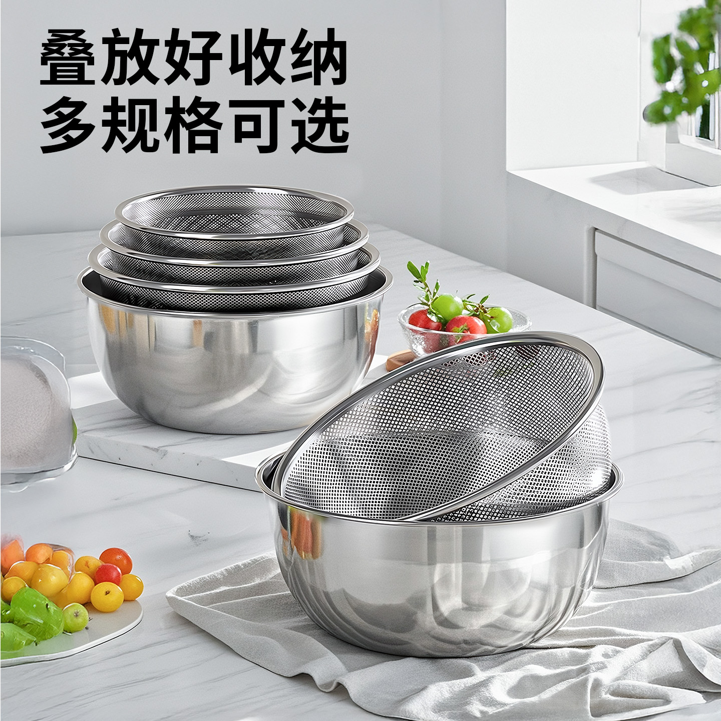 不锈钢盆沥水篮新款 洗菜盆焯水淘米神器家用食品级滤水篮过滤网筛