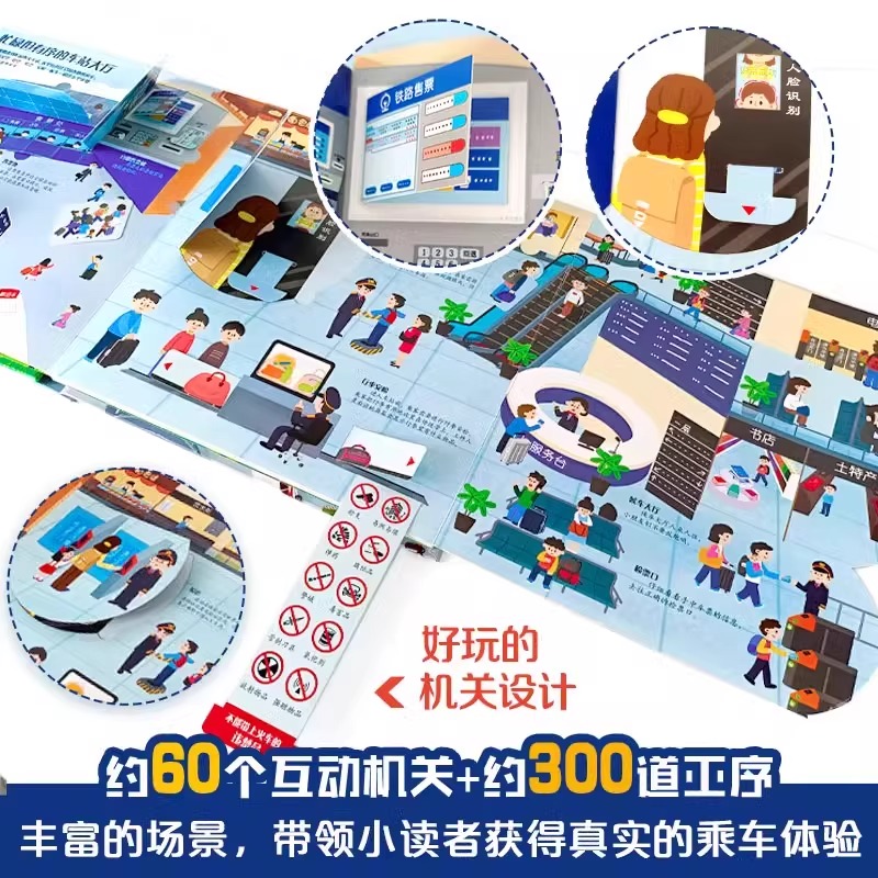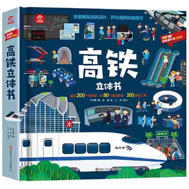 儿童3d立体书 宝宝机关全景展现高铁设计趣味翻翻书绘本 8岁以上幼儿宝宝益智情景启蒙认知早教书超大开本 高铁立体翻翻书