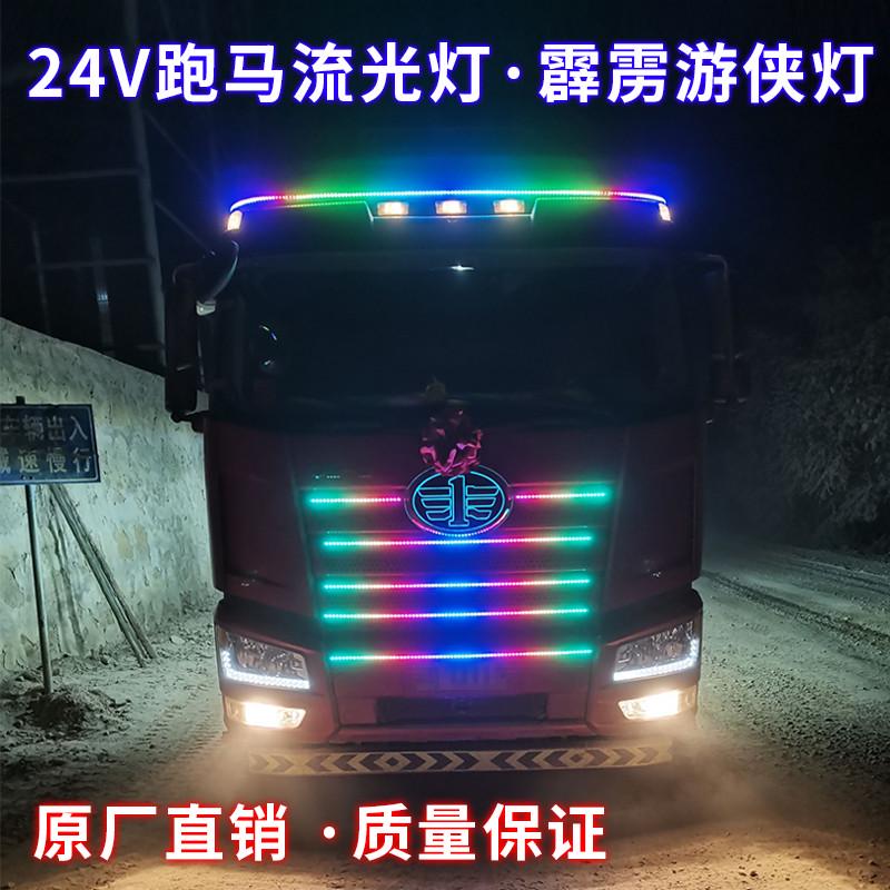 24V货车卡车改装 饰灯条 游侠灯七彩流水跑马灯中网流光灯遮阳板装
