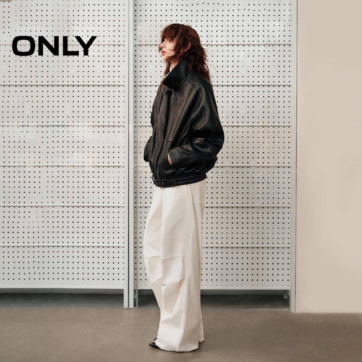 休闲裤 ONLY2025秋季 阔腿裤 天丝纯色可调节松紧腰头宽松工装 女 新款
