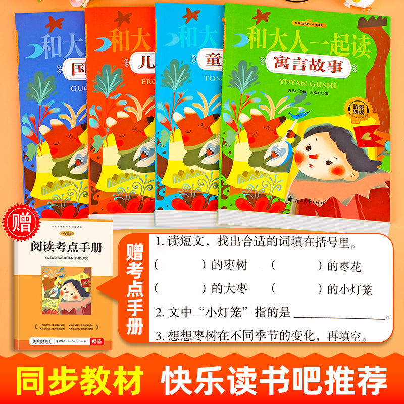 和大人一起读一年级上册课外书必读快乐读书吧全套4册儿歌童谣国学启蒙童话故事寓言故事老师推荐 下 小学1年级上课外阅读书籍人教版