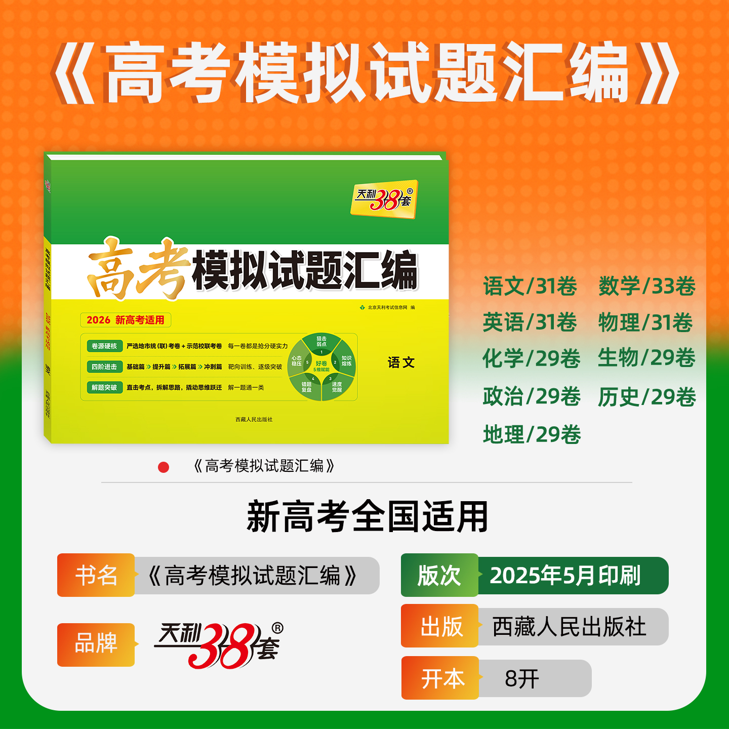 2026版 10语文数学英语物理化学生物地理政治历史新教材高二高三高考总复习试卷天利三十八套必刷卷子 天利38套高考模拟试题汇编38