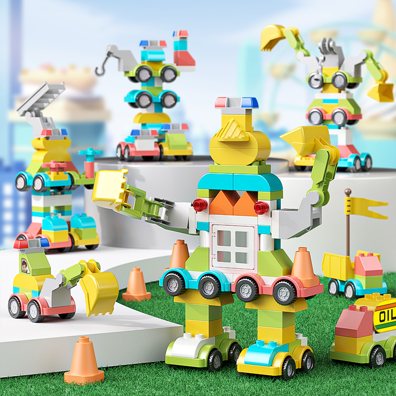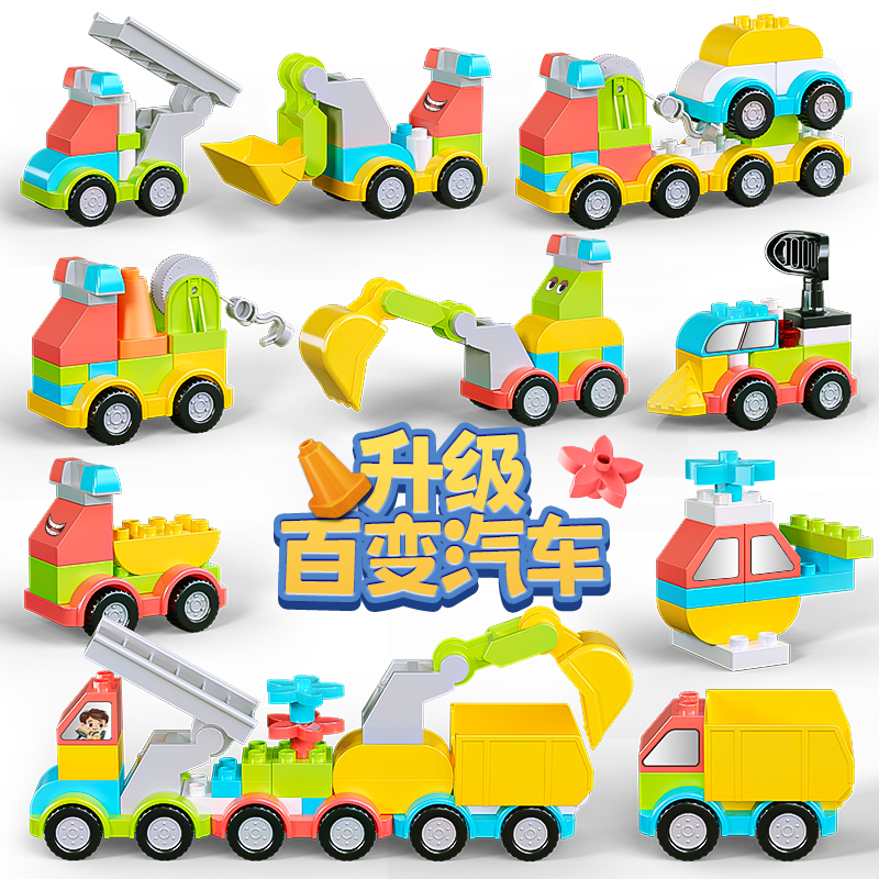 6周岁男女孩礼物 大颗粒积木汽车拼装 DIY玩具儿童智力宝宝益智3