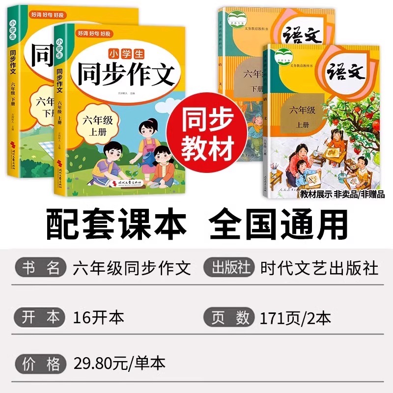 六年级上册同步作文人教版 6年级下册小学生作文书大全小学语文小升初满分作文优秀精选总复习必刷题字帖练字帖六下六上 2025新版