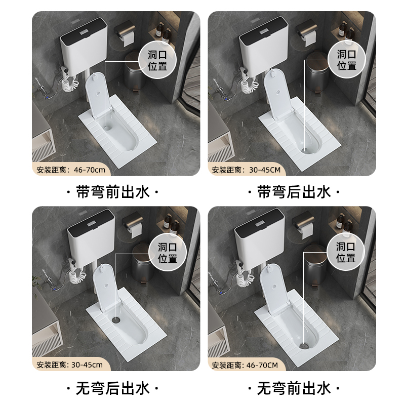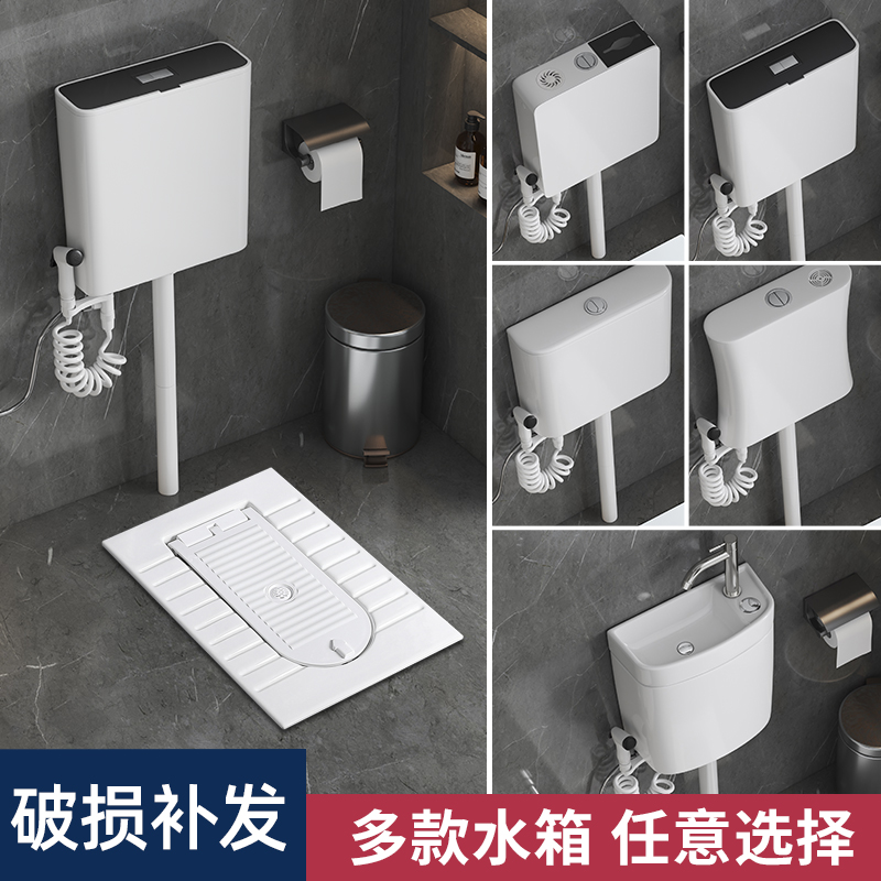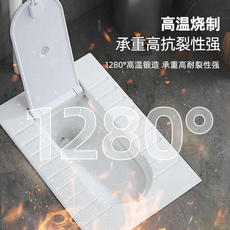 带盖板蹲便器一体形蹲厕陶瓷蹲坑式 便池家用大便盆水箱防臭马桶