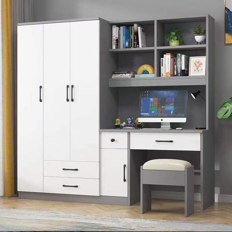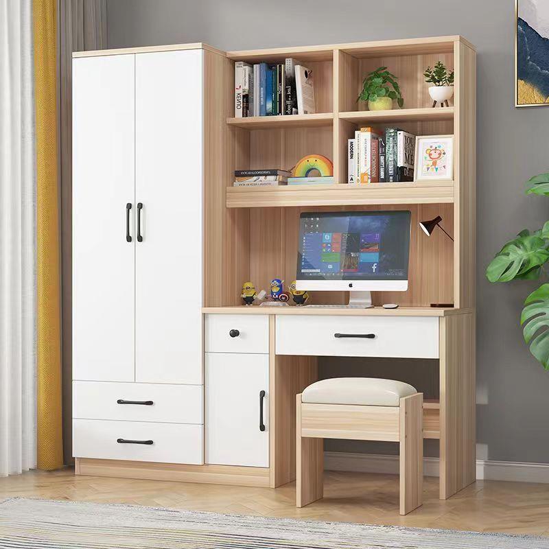 实木书桌衣柜一体组合卧室家用组合柜儿童书桌书柜学生组合电脑桌