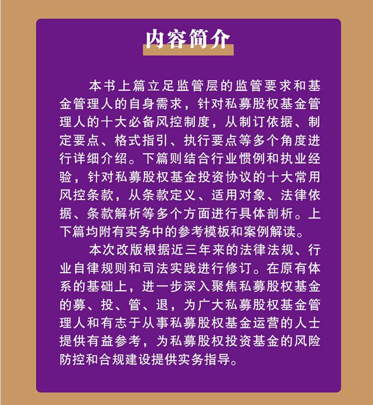 杨春宝 第2版 孙瑱著 私募股权基金管理人风险控制制度 社9787521623017 正版 中国法制出版 私募股权投资基金风险防控操作实务