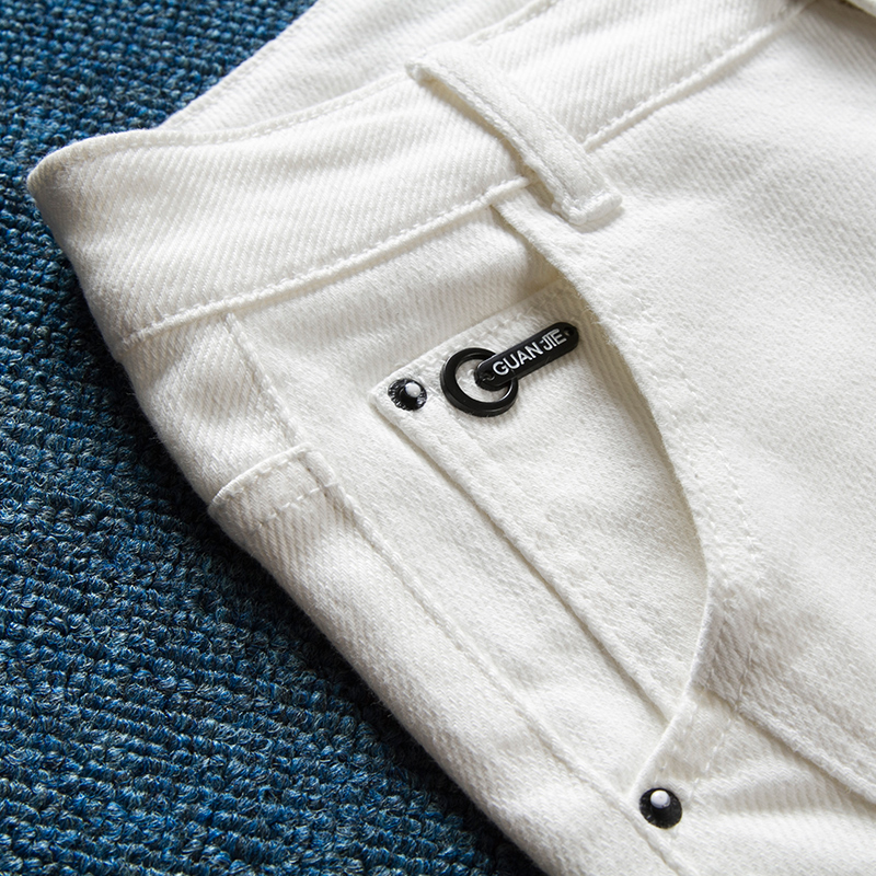 江南先生NewJNXS复古重磅斜纹撞色印绣花弯刀牛仔裤 子 宽松休闲裤