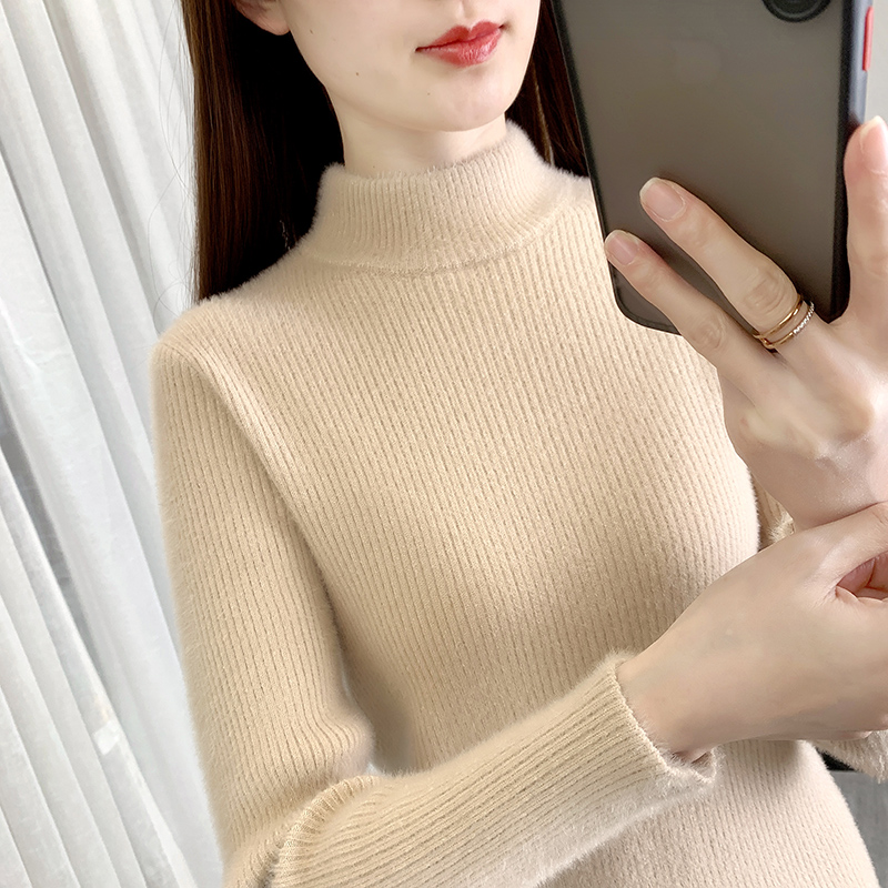 米皇2025秋冬新款 女休闲多色可选纯羊绒毛衣 半高领套头纯色羊绒衫