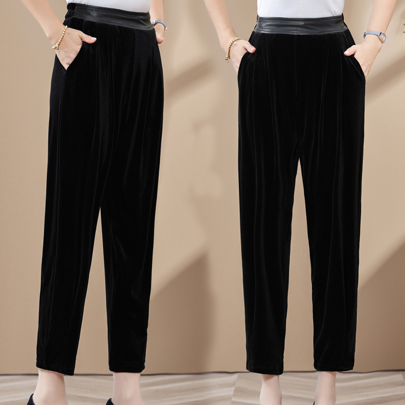 胖mm宽松中年妈妈灯笼裤 金丝绒哈伦裤 小脚大码 丝绒长裤 女春秋薄款