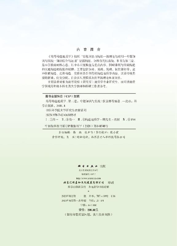 第三卷 专题知识与实践 正版 现货正版 书籍 社 高等构造地质学 科学出版 侯泉林等