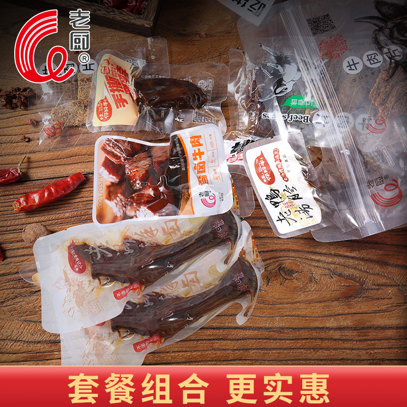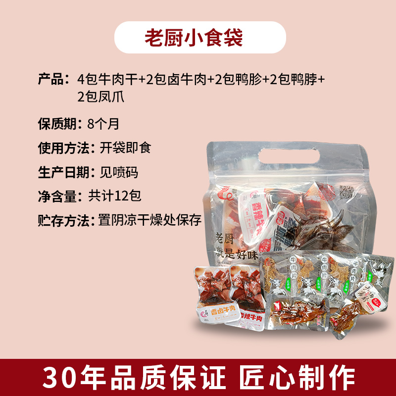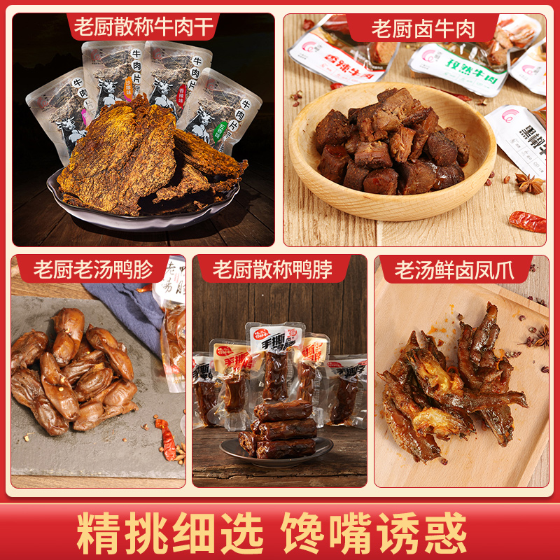 老厨卤味零食礼包小食袋组合装 牛肉干卤牛肉鸭肫鸭胗鸡爪凤爪鸭脖