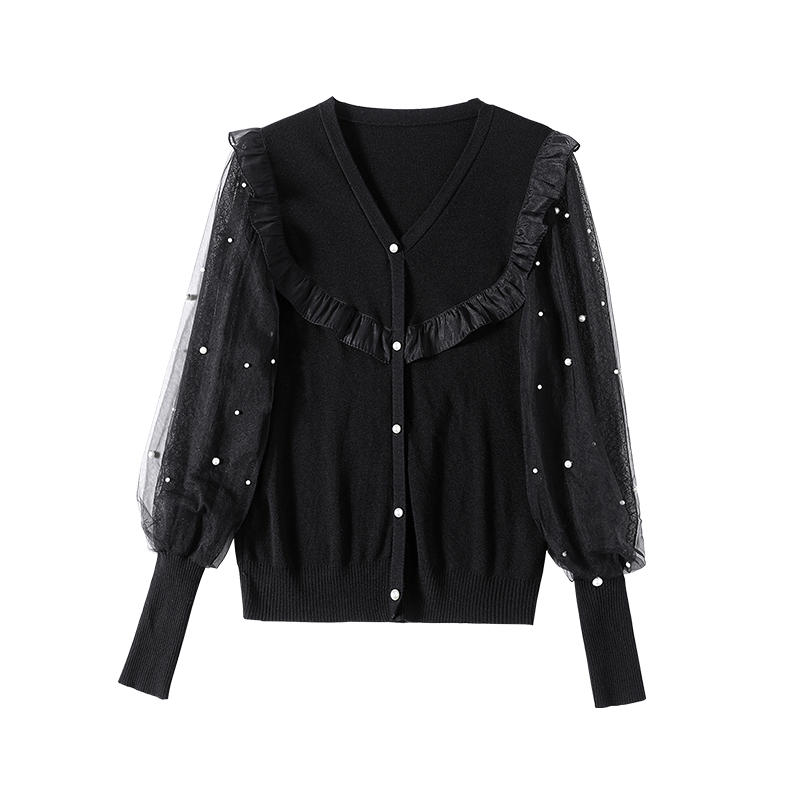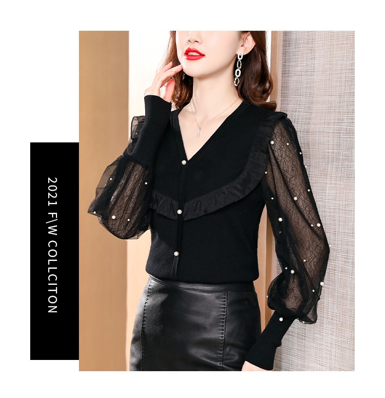 高级感内搭上衣 蕾丝拼接毛衣针织衫 黑色打底衫 女秋冬洋气2025新款
