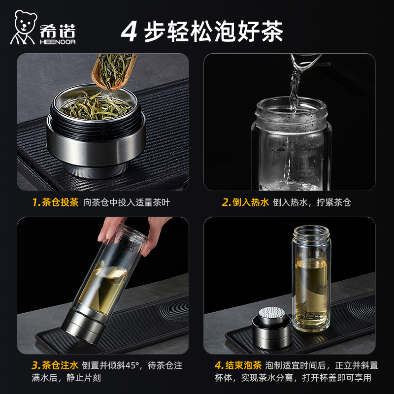 希乐双层玻璃杯男士 泡茶杯专用水杯大容量茶水分离杯家用喝水杯子
