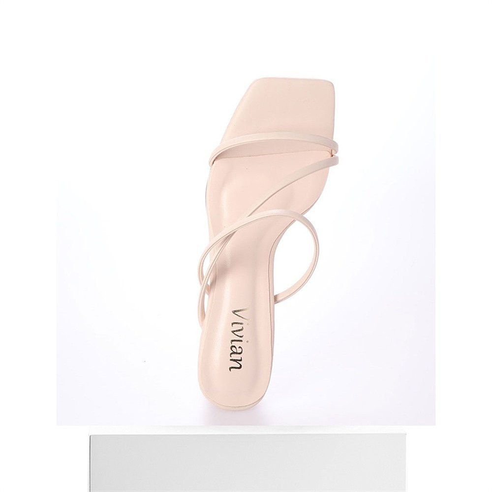 日本直邮 精致绑带高跟凉鞋 Vivian Ashime 乳白 方头