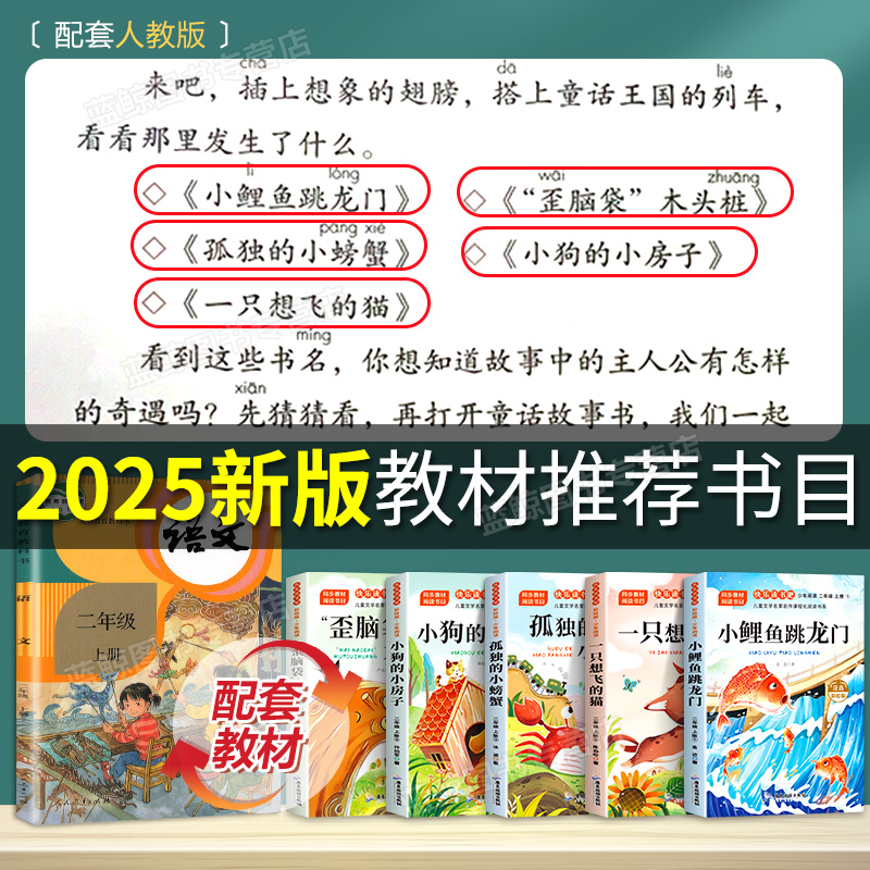 小螃蟹小狗小房子2上老师推荐 小鲤鱼跳龙门二年级上册必读 猫歪脑袋木头桩孤独 一只想飞 人教 课外书全套5册快乐读书吧注音正版