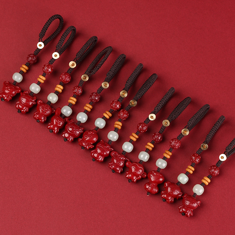 2025年十二生肖汽车钥匙扣挂件朱砂属蛇本命年男女吊坠吉祥物新款