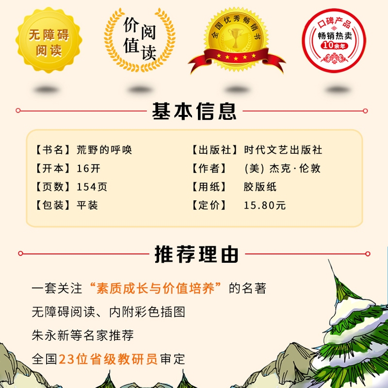 呼唤 初中生高中生课外阅读名著书籍动物小说书精美彩插励志版 又名荒野 书目推荐 读物小学 三四五六年级必读课外书经典 野性