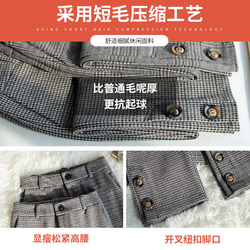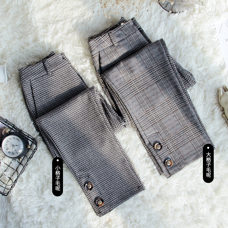 九分洋气阔腿裤 垂感宽松直筒高腰针织奶奶裤 子女秋冬季 格子毛呢裤