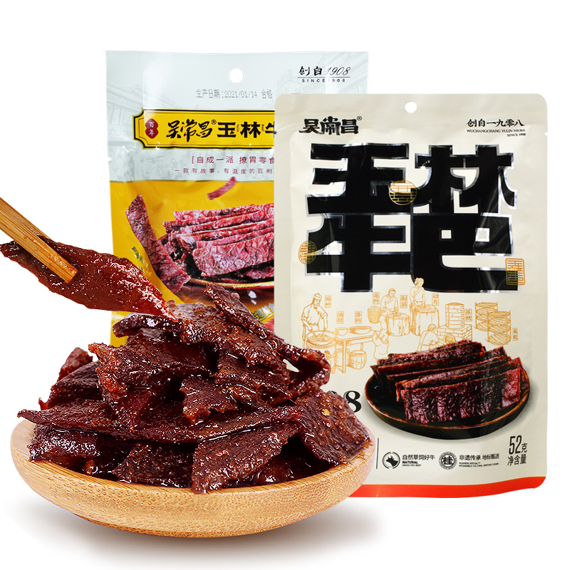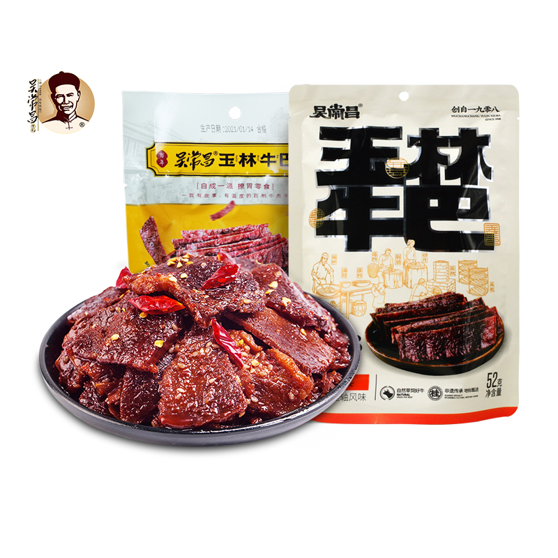 玉林特产 2袋 吴常昌牛巴手工香辣牛肉干牛肉脯休闲零食小吃39.5g