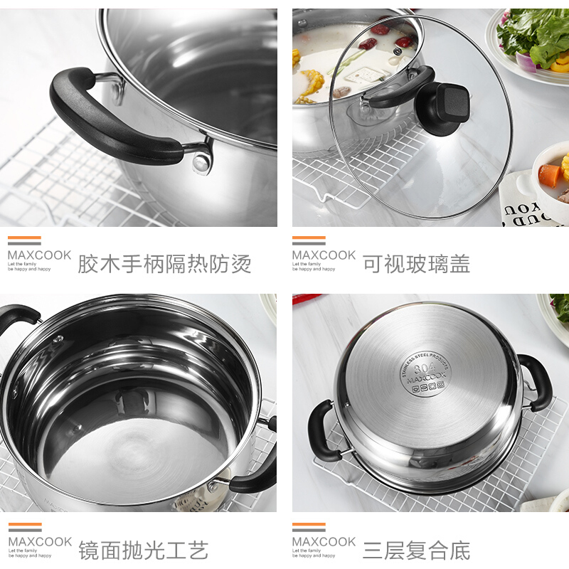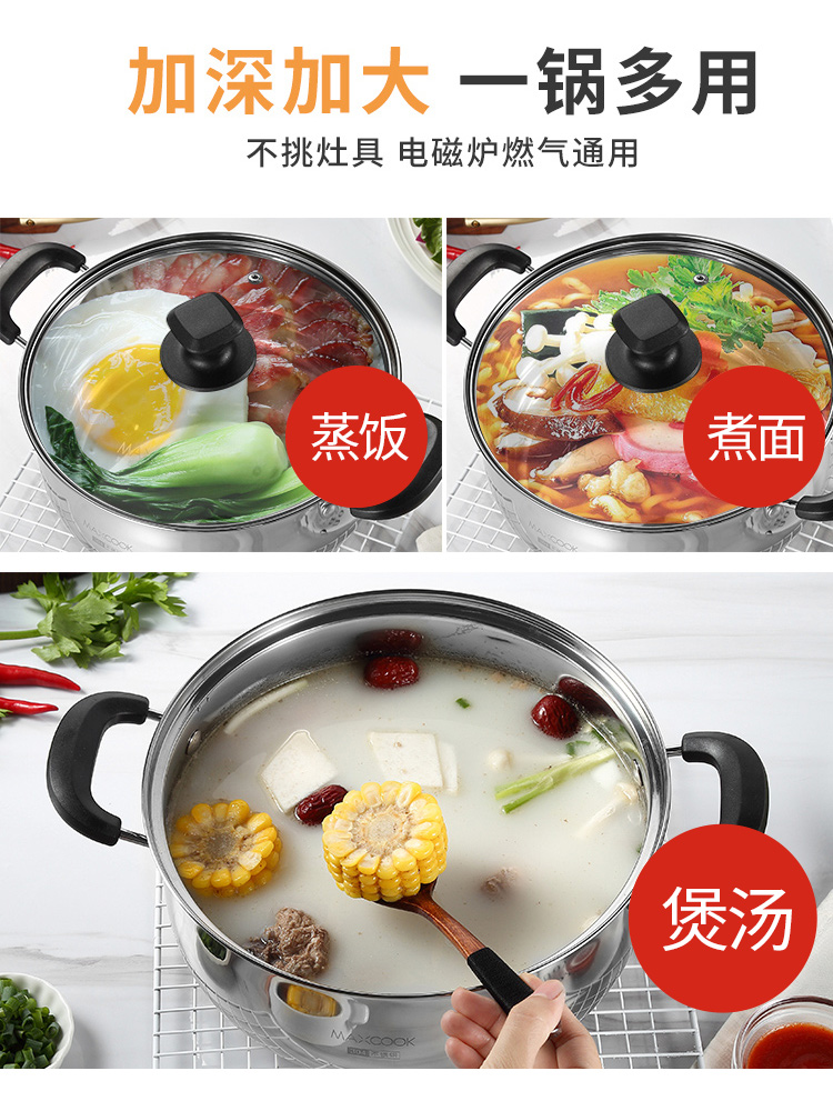 美厨汤锅304不锈钢加厚家用小奶锅煮粥锅煮锅锅具燃气电磁炉炖锅