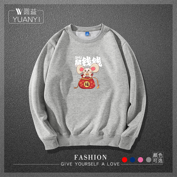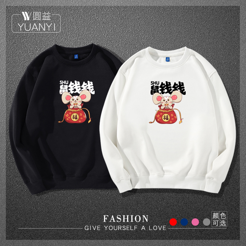 潮流红色鼠年卫衣情侣2020冬季 图案情侣圆领老鼠本命年衣服鼠新年