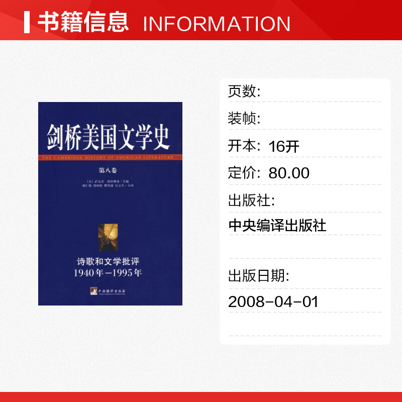 文学评论与研究文学 图书籍 1995年 著作 著 萨克文·伯科维奇 1940年 美 新华书店正版 剑桥美国文学史 文学理论 第8卷