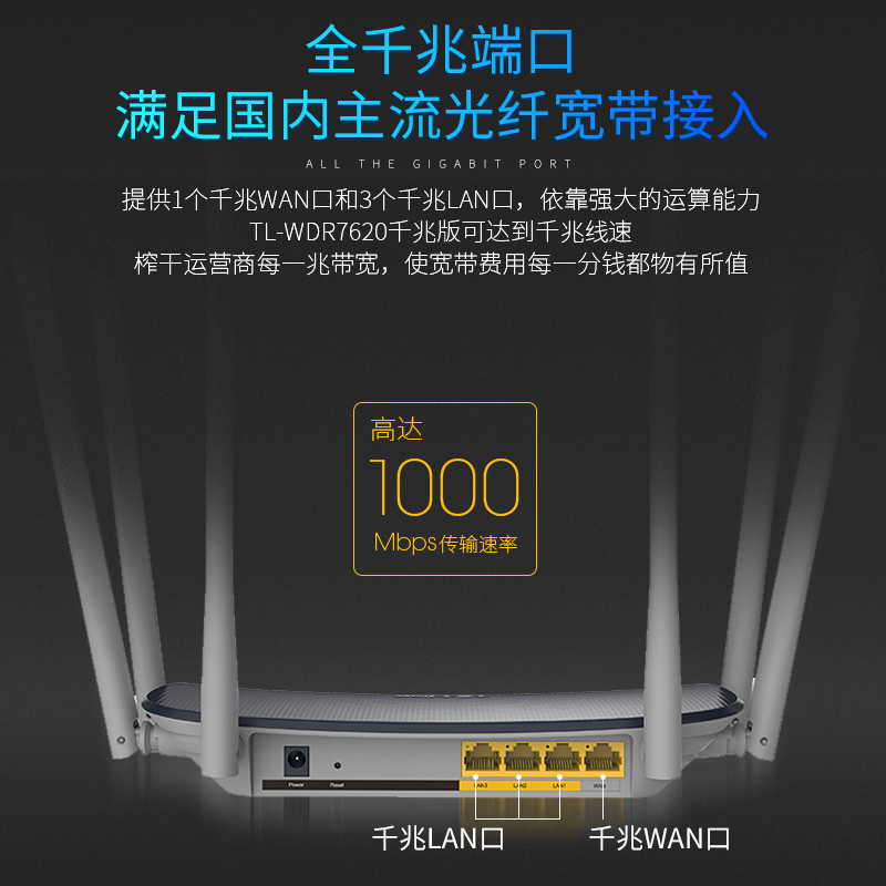 普联TP 5G1900M家用wifi大功率高速光纤穿墙王电信移动增强信号 LINK双频无线路由器全千兆端口WDR7660千兆版