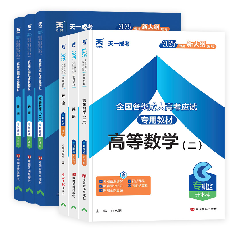 天一成考专升本复习资料2025自学考试成人高考专升本教材政治医学综合语文英语高等数学二民法教育理论历年真题试卷题库自考专升本