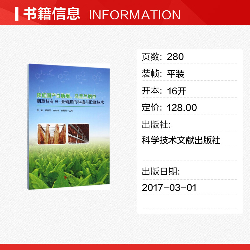 主编 图书籍 亚硝胺 新华书店正版 手工业专业科技 轻工业 等 周骏 种植与贮藏技术 马里兰烟中烟草特有N 降低国产白肋烟