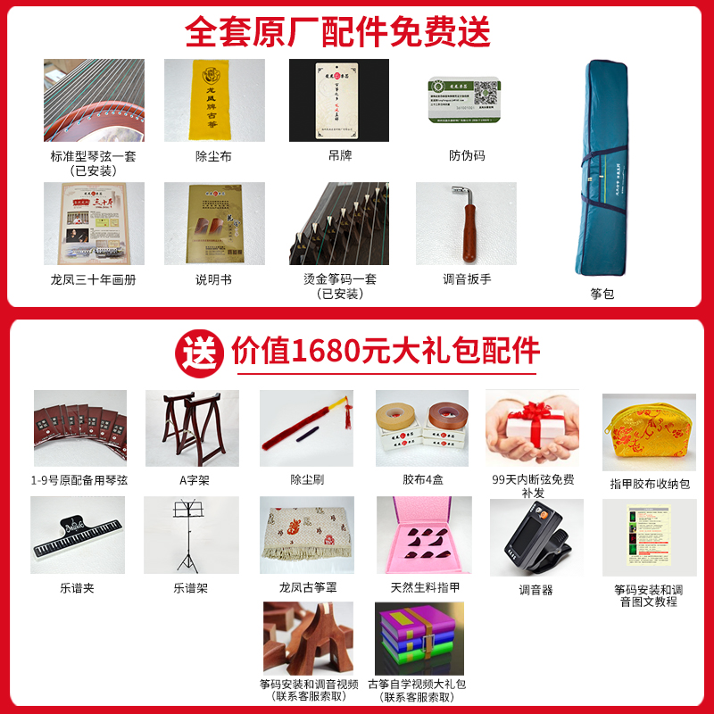 龙凤古筝YS 506窗格龙凤初学者考级成人儿童通用实木古筝厂家直销
