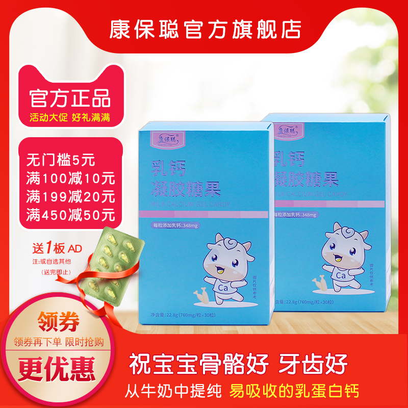 康保聪乳钙儿童钙片液体婴钙滴剂儿钙宝宝补钙胶囊2盒装 送婴儿AD