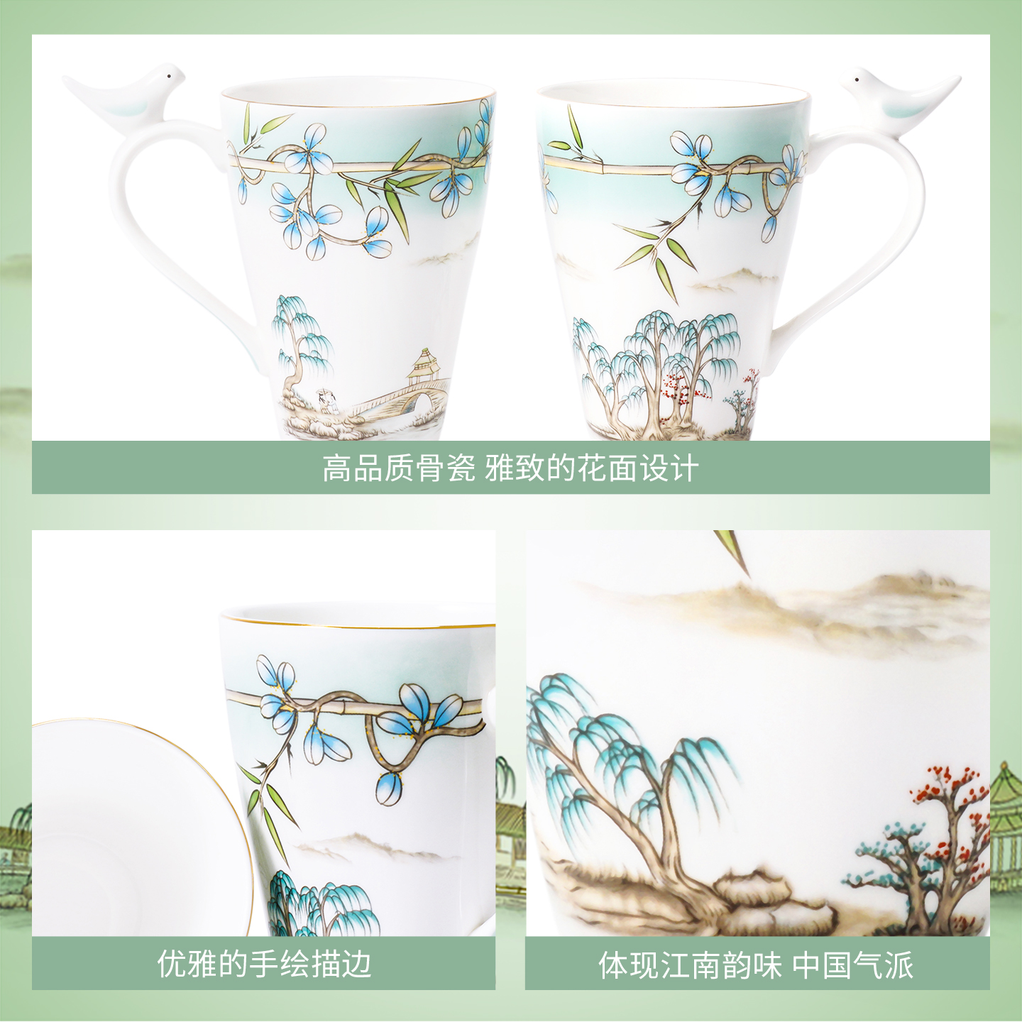 玛戈隆特西湖盛宴骨瓷早餐杯情侣对杯办公室家用杯子马克杯泡茶杯