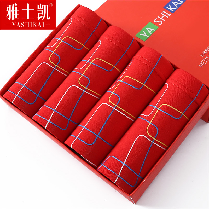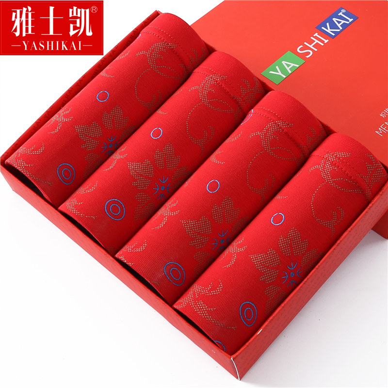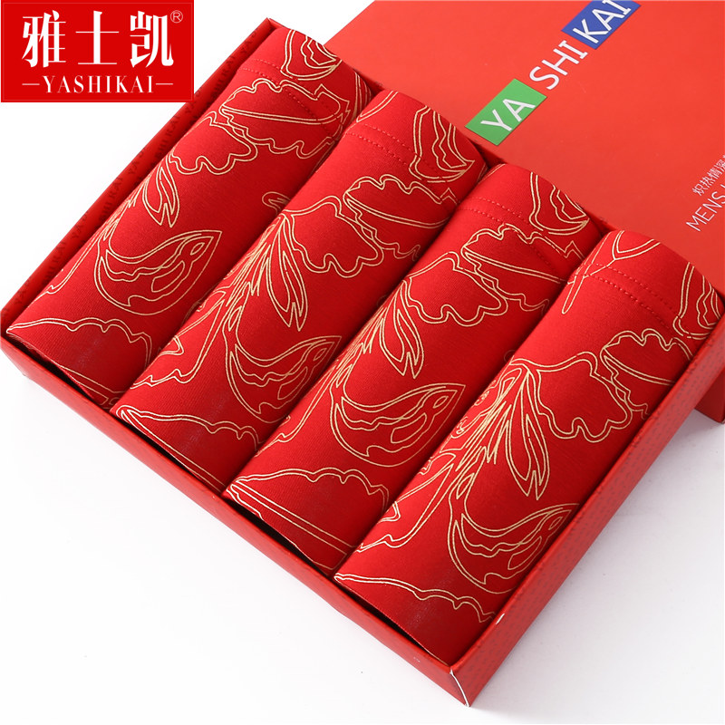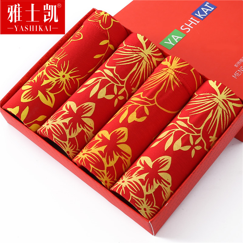 短裤 本命年大红色男士 莫代尔透气四角大码 男平角裤 头属虎礼物 内裤