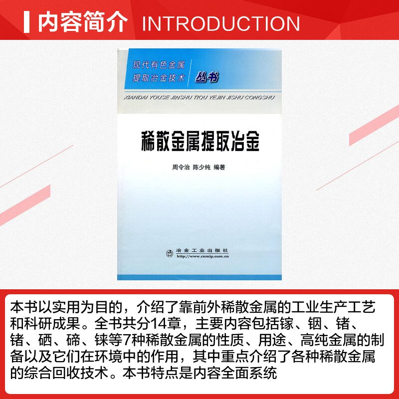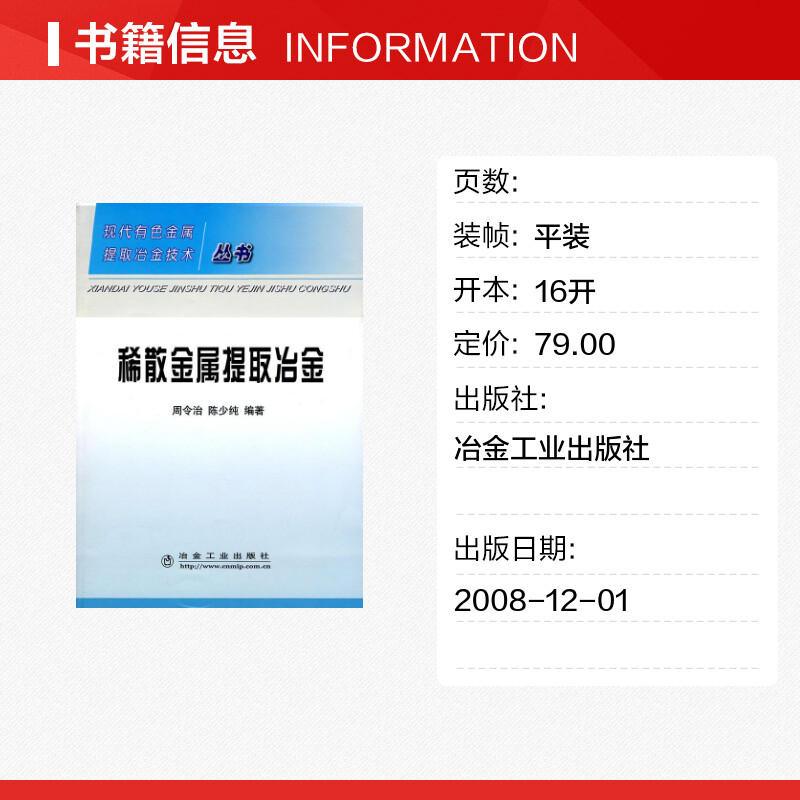 陈少纯 编著 新华书店正版 现在有色金属提取冶金技术丛书 图书籍 冶金工业专业科技 周令治 著 稀散金属提取冶金 著作