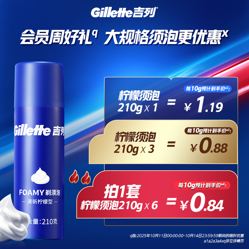 吉列男士 剃须泡沫剃须膏柠檬型刮胡泡非吉利剃须刀刮胡子须泡