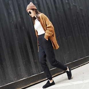 运动休闲棉裤 哈伦长裤 女小脚宽松显瘦冬季 双层高腰加长加绒运动裤