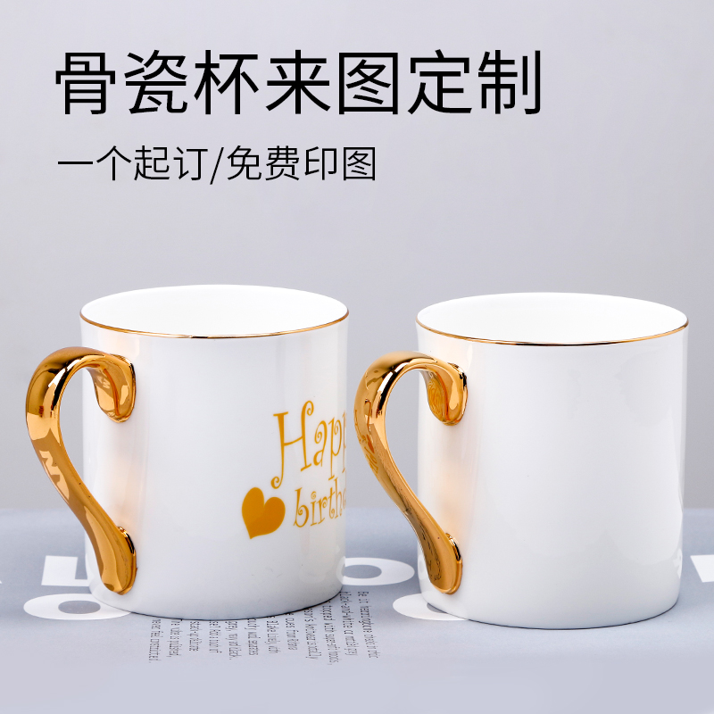 kuyin杯子创意个性 潮流骨瓷马克杯定制logo骨瓷杯生日情人节礼物
