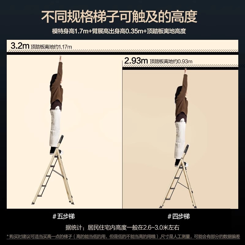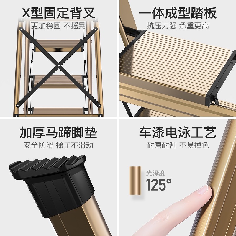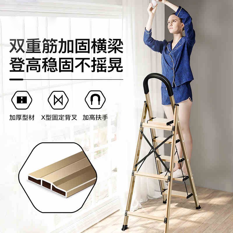 格美居梯子家用折叠人字梯铝合金加厚室内多功能伸缩四五步扶手梯