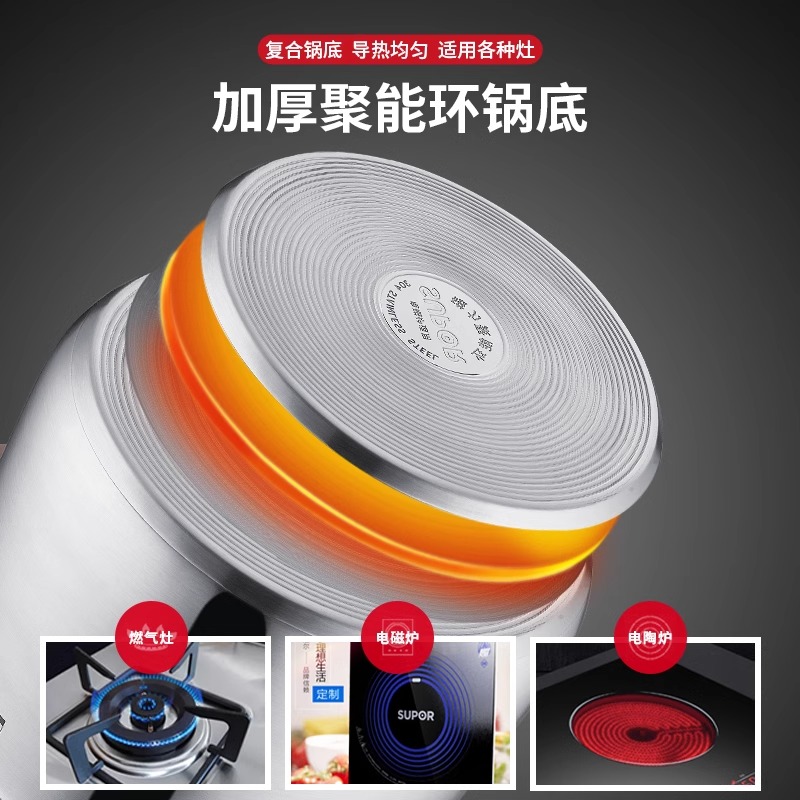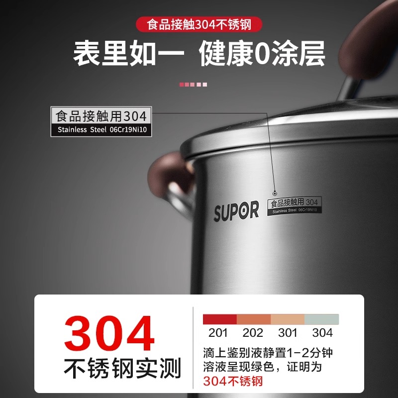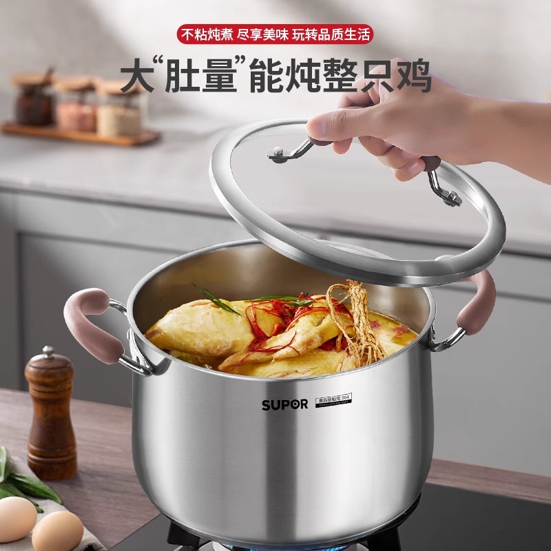 苏泊尔汤锅加厚304不锈钢煮粥炖汤锅家用不粘大容量电磁炉燃气用