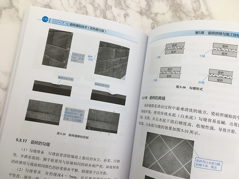 饰设计装 潢装 修施工家居书籍 轻松掌握瓷砖铺贴技术 瓷砖拼排与施工技术 室内装 墙砖地砖铺贴方法技巧书 泥瓦工图书籍 双色图文版