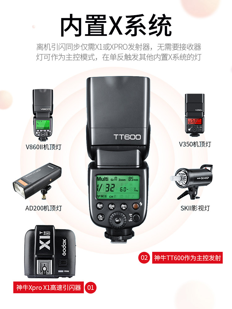 godox神牛TT520III三代 TT560II二代闪光灯外置机顶闪光灯热靴适用于佳能尼康索尼zv1富士单反微单相机通用型