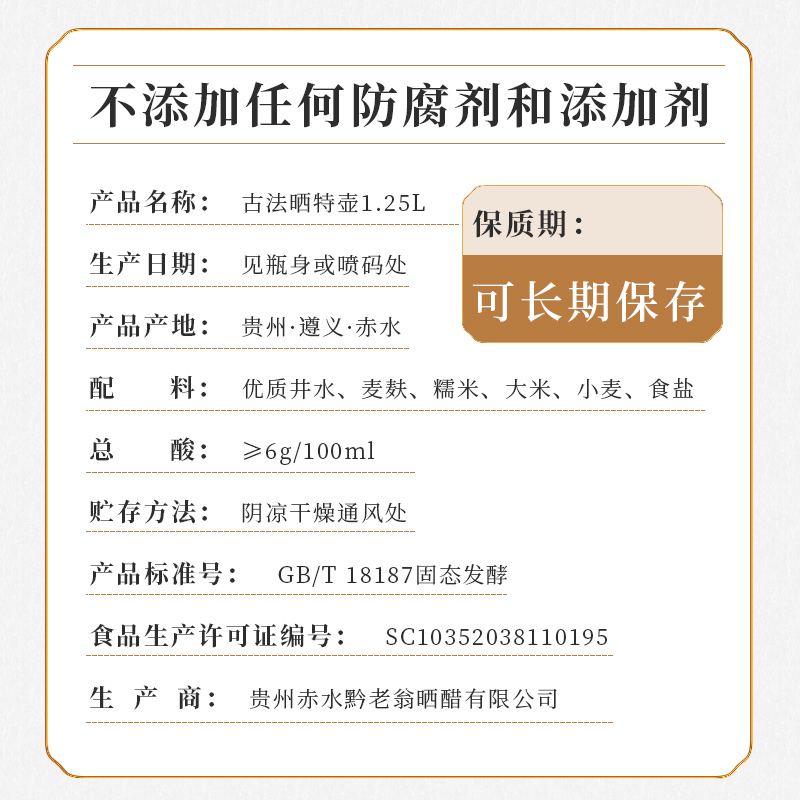 食用凉拌醋饺子醋泡蒜泡黑豆 家用 黔老翁赤水晒醋2.5斤装 三年醋