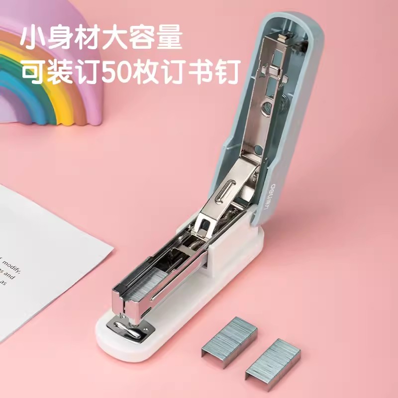 得力订书机马卡龙色学生用订书机办公用品家用多功能12号省力高颜值订书器订书针订书钉