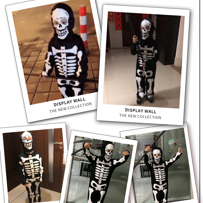万圣节儿童服装 演出服 男舞台表演服鬼衣化妆舞会cos恐怖骷髅套装