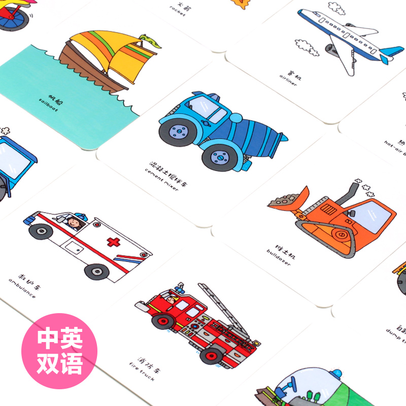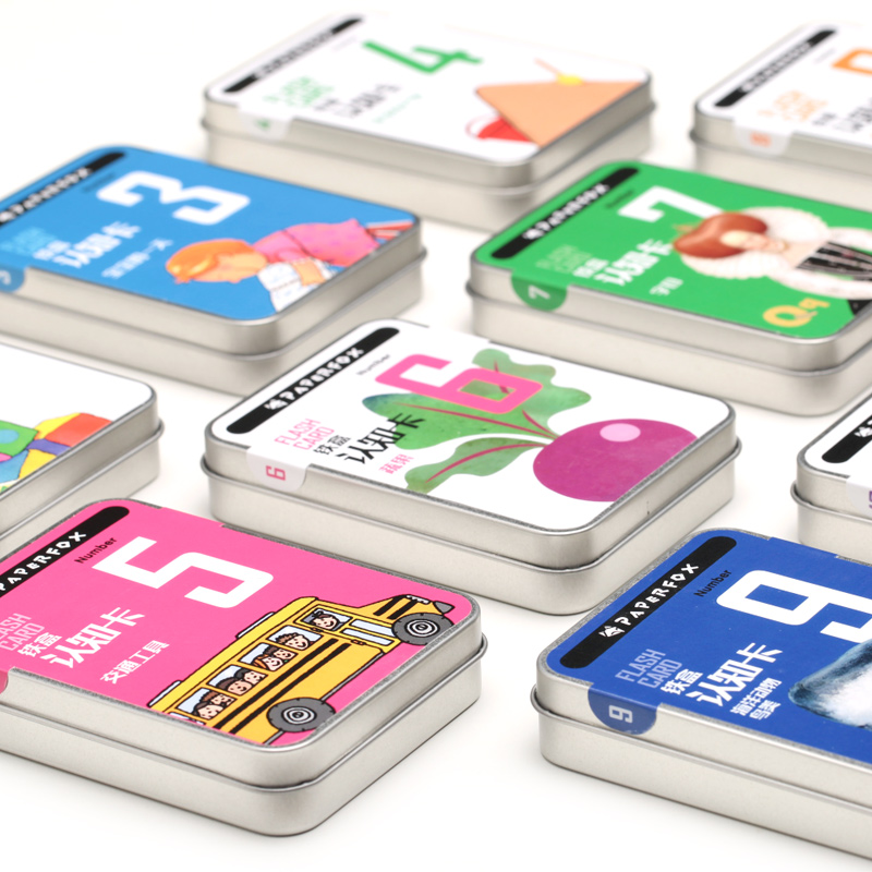 4岁婴幼儿启蒙认知卡铁盒装 纸贵满堂 交通工具鸟类海洋动物数字颜色国旗形状蔬果字母车标标志认知 幼儿早教认知卡彩色卡片1