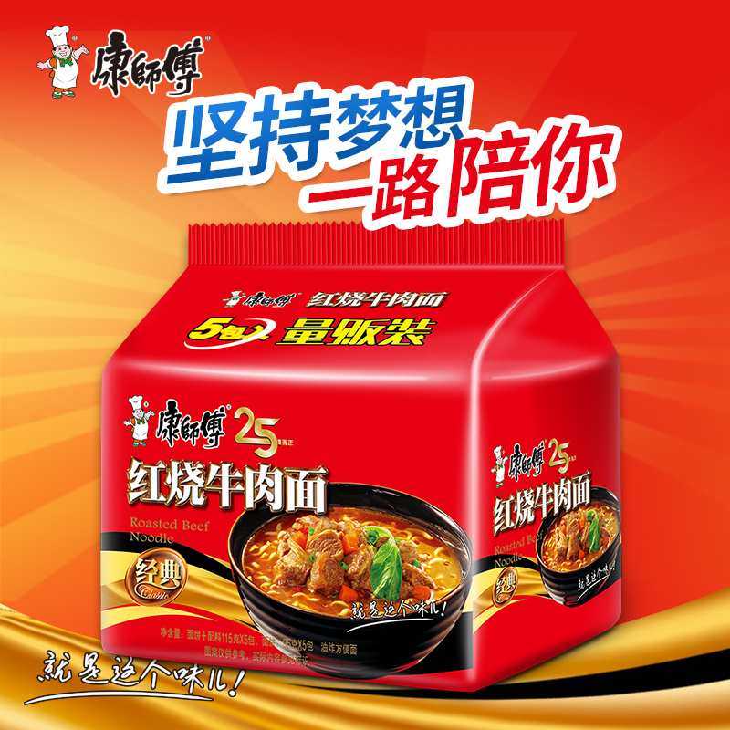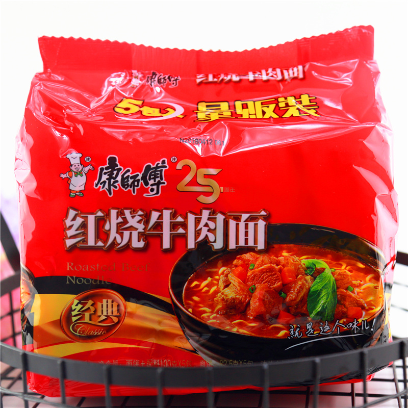 五连包夜宵泡面拉煮快餐面 包邮 经典 康师傅方便面红烧牛肉面5袋装