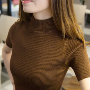 装 女秋季 2025新款 内搭毛衣修身 短袖 洋气上衣百搭打底衫 针织衫