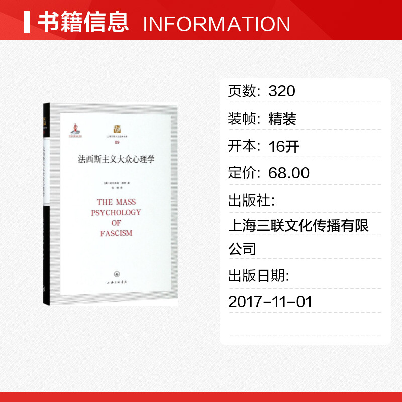 著;张峰 译 上海三联文化传播有限公司 法西斯主义大众心理学 书籍 威尔海姆·赖希 正版 新华书店旗舰店文轩官网 奥